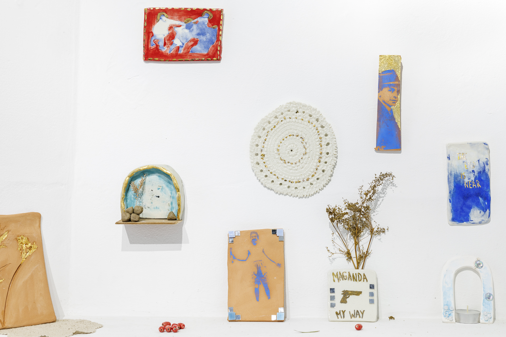 Using the My Way Killings as a point of departure, Smith and Datu adopt a method of practice-led research to respond to the bizarre and violent phenomenon. Both friends experienced similar Filipino Catholic upbringings in Australian suburbia, and recontextualise familiar items and imagery as an act of devotion to reclaim a future after trauma. Paper mache, textiles, karaoke and digital collage are used as a bricolage of homely mediums to convey comfort and humour. Embellishment and dazzling elements are also employed, inviting viewers to draw lines between religious iconography and karaoke bar environments. Through their making and conversations, both Smith and Datu reflect on what queer and complex migrant identities can look like, and what empowerment after personal and cultural curse-breaking means to them.